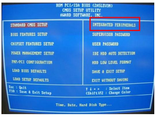 パソコンの電源を切ってから後、オンにしながら DELキーを押して、通常に入るCMOS setupからPheripheral側においてプリンターポートを0x378番地、LPT1、 ECP、インターラプトIRQ7に取ります。
